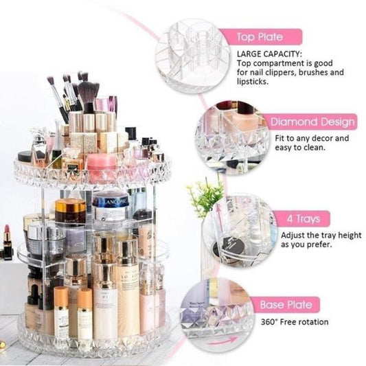 360 Degree Rotating Cosmetic Storage Box Makeup Organizer Cosmetics Storage Rack Fashion Beauty Crystal helf Display Stand